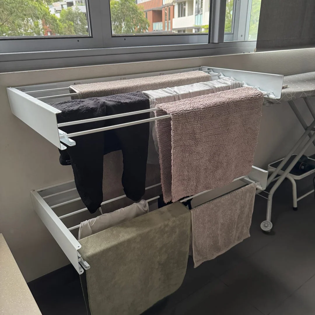 Our rack is designed to support up to 30kg of wet or dry clothes, making it perfect for everyday laundry like shirts, jeans, towels, and delicates.